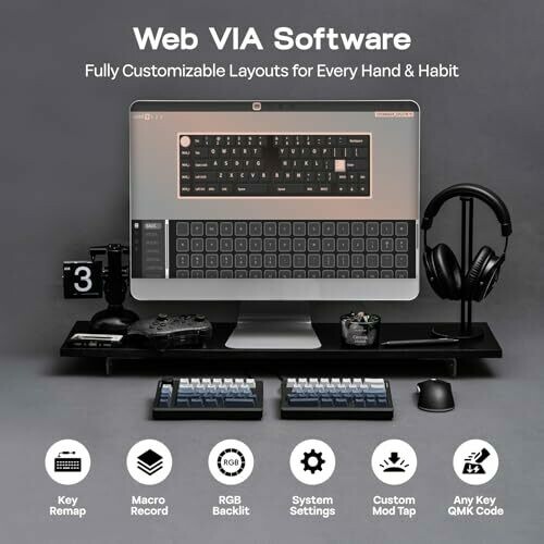 Keys and macros can be mapped via VIA with real-time customization and JSON configuration support for flexible personal and professional use.