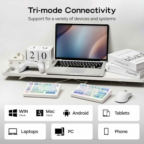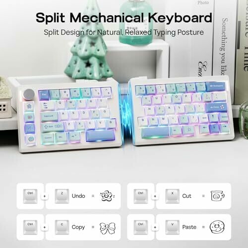 • Experience an ergonomic 70% split layout with detachable halves that can be linked or used apart for customizable typing angles and lasting comfort.