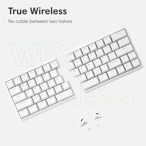 Experience wireless freedom with a 2.6GHz option or wired connectivity, an ergonomic split design with a built‑in palm rest, quiet typing with foam dampening, a compact 60% layout, hot‑swappable switches, RGB lighting, and full programmability for Mac and Windows via Vial.