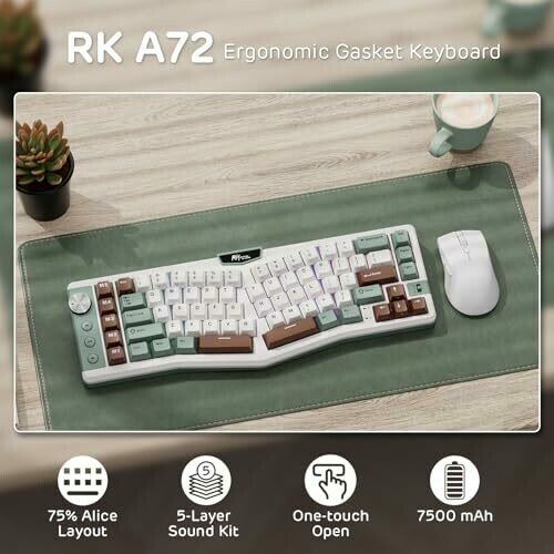 • RK Royal Kludge A72 Alice Ergonomic Wireless Mechanical Keyboard