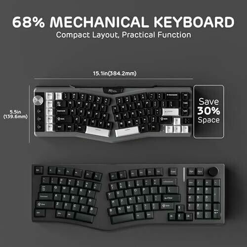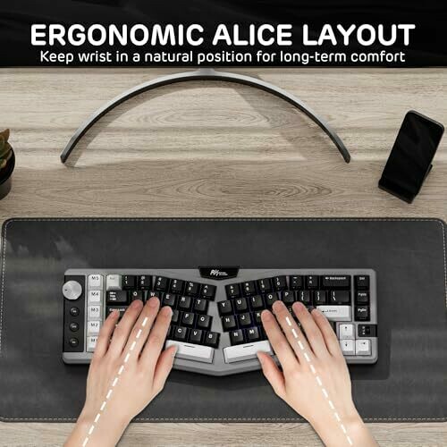 • Ergonomic Alice layout with a compact 68% footprint and 72 keys designed to promote natural typing posture and reduce wrist strain