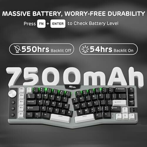 RK Royal Kludge RKS70 Wireless Ergonomic Split Keyboard, 75% RGB Mechanical Keyboard (Creamy Switches)