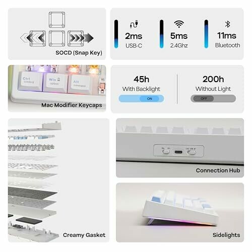 • Tri-mode wireless connectivity: Bluetooth, USB-C wired, and 2.4GHz wireless for versatile device pairing.