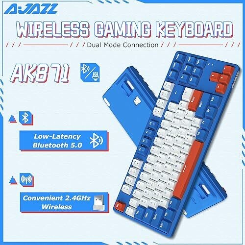 Experience dual-mode connectivity with Bluetooth 5.0 and a 2.4 GHz option for seamless switching across devices. The compact 75% layout saves desk space, and removable top cover provides two styling options. Includes ergonomic three-color keycaps and Windows/Mac compatibility with no backlight.