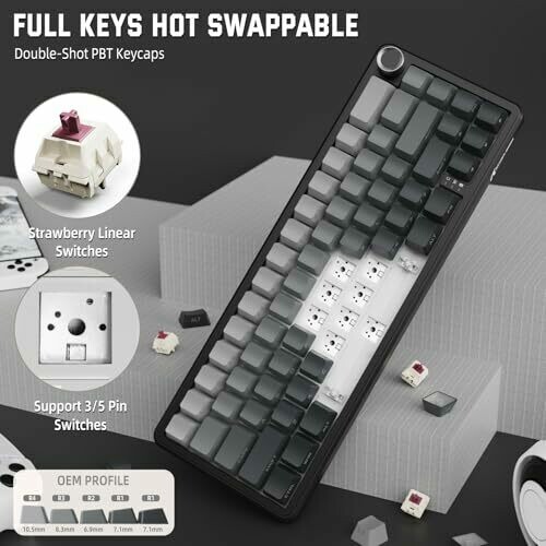 • Hot-swappable switches with a smooth, premium typing feel and easy customization.