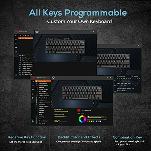 • RK Royal Kludge RK61 60% Mechanical Keyboard with Coiled Cable (Brown Switch)