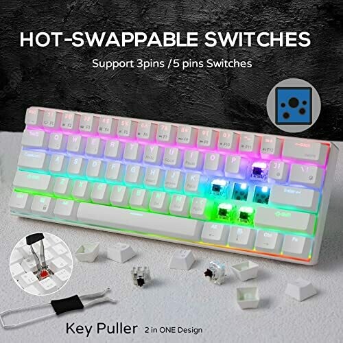 • Hot-swappable brown switches offer tactile feedback with quieter action, ideal for both typing and gaming.