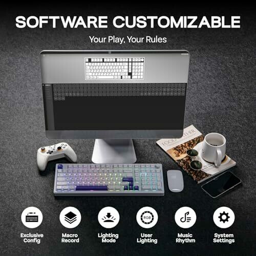 • South-facing RGB backlighting and durable PBT keycaps for vibrant, lasting illumination and longevity.