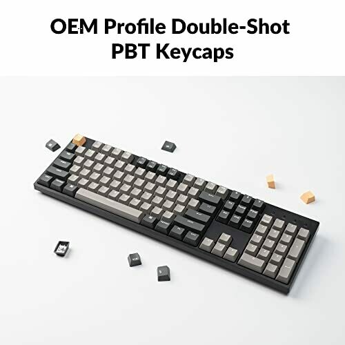 • OEM profile Double-Shot PBT keycaps provide durable legends, excellent oil resistance, and a premium typing feel.