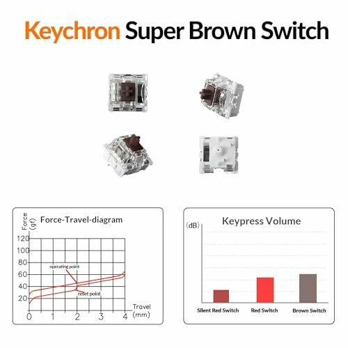 Gateron G Pro Brown switches with tactile feedback and high durability.