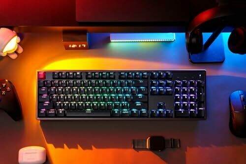 Experience a flagship full-size keyboard with an aluminum frame and durable switches for lasting performance. Enjoy Bluetooth 5.2 or USB-C wired connectivity, open-source QMK firmware, and a launcher app for key remaps and layouts. Factory pre-lubed switches and robust 104-key layout.