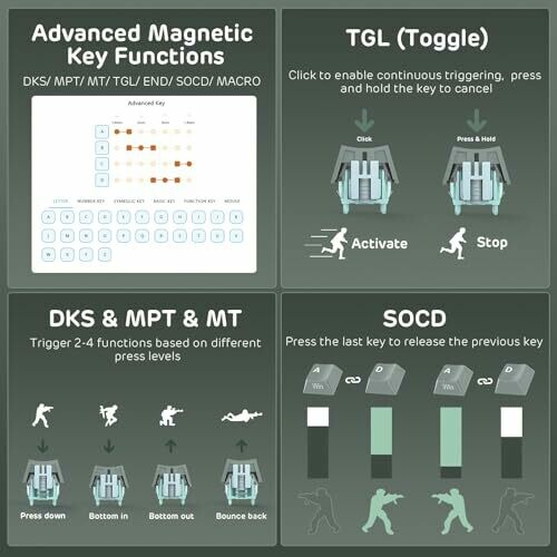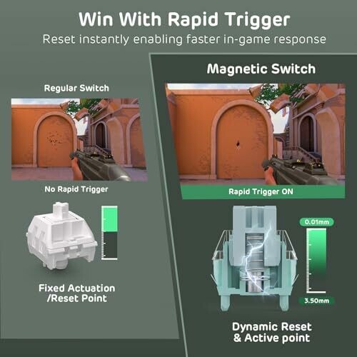 • Rapid Trigger capability enabling fast actuation and reset suitable for competitive FPS gaming.