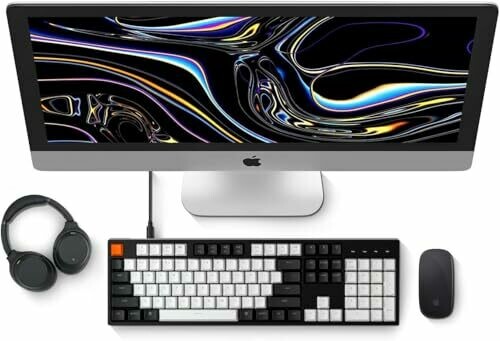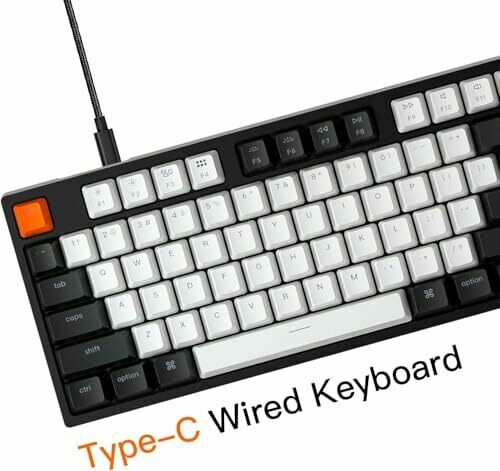 The Keychron C2 is a hot-swappable 104-key full-size wired mechanical keyboard designed for Mac and Windows use.