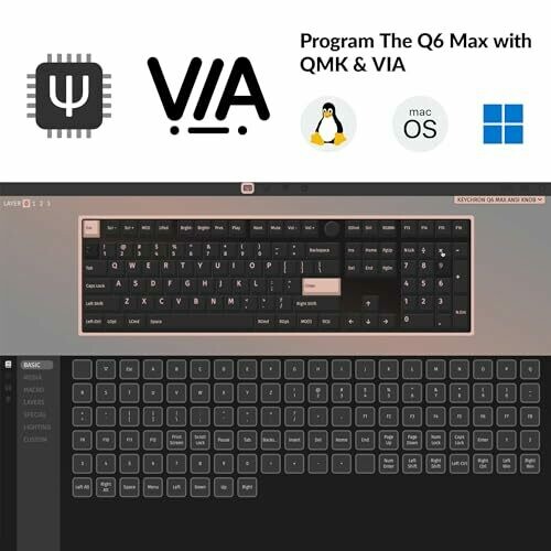• QMK/VIA programmable layout for complete key remapping and customization.