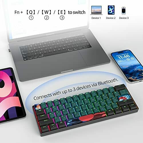 Surmen GT61 60 Percent Mechanical Keyboard offers a compact layout with linear Gateron switches, Type-C connection and Bluetooth 5.0. A slim, portable keyboard designed for office and travel use, with reliable typing feel and dual connectivity.