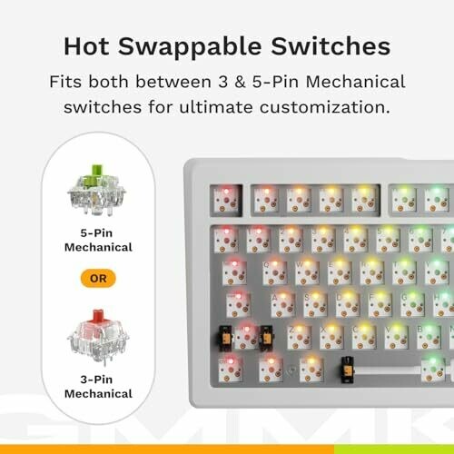 • Hot-swappable design supports 3/5-pin switches for easy upgrades and experiments.