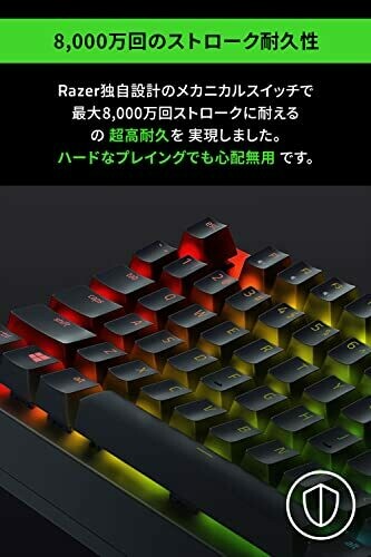• Razer Green mechanical switch delivers tactile, clicky keystrokes with precise feedback for responsive gameplay.