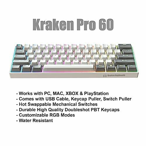 • Kraken Keyboards Kraken Pro 60 | 60% Hot Swappable Mechanical Gaming (Silver Switch)