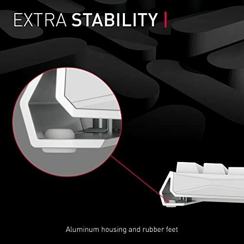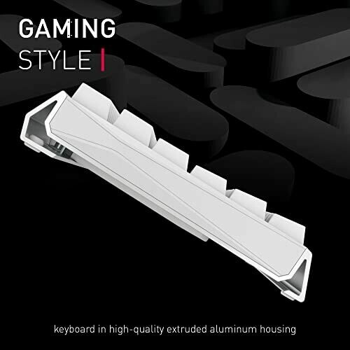 White aluminum chassis designed for gamers. MX Red or MX Brown switches available. Per-key lighting with profiles for customization. Connectivity options include Bluetooth or 2.4 GHz with ultra-low latency. Intelligent charging lets you play while charging in a screwless aluminum housing.