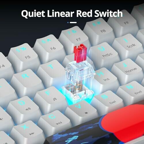 • Smooth mechanical linear Red switches deliver quiet, effortless typing with quick, precise keystrokes.