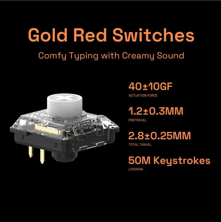 • Creamy, quiet vibes from pre-lubed Gold Red linear switches deliver smooth keystrokes with a light actuation feel.