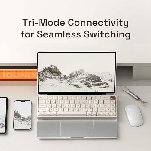 Experience a slim CNC aluminum keyboard with a 65 layout for a clean desk. Creamy, quiet linear switches deliver smooth keystrokes. Three-device connectivity via Bluetooth, 2.4GHz, and USB-C, plus VIA support and cross-platform Mac/Windows compatibility.
