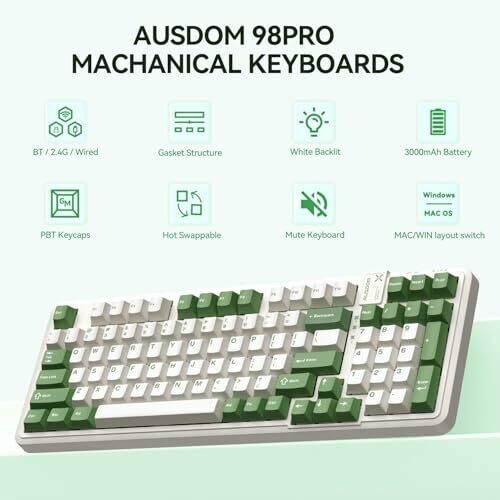 • Ausdom 98Pro Silent Wireless Mechanical Keyboard