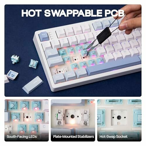 • Hot-swappable, 5-pin switch compatibility lets you customize tactility and sound without soldering.