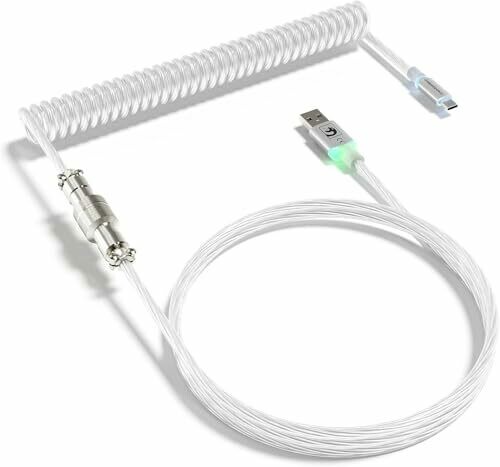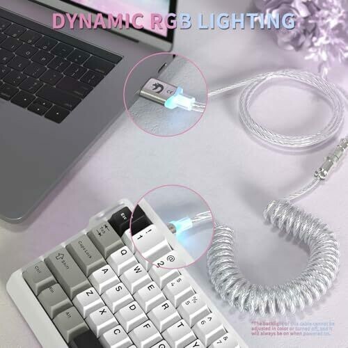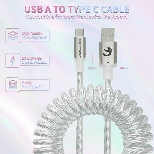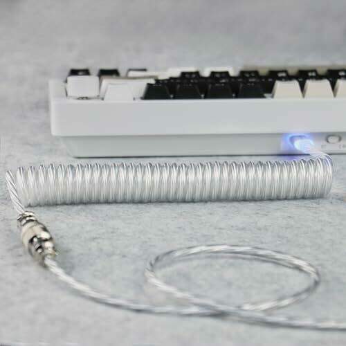 • Mambasnake C01 Ultra Rgb Lighting Coiled Keyboard Cable for Gaming Keyboard, Double-sleeved Mechanical Keyboard Cable with Detachable Metal Aviator,type-c to Usb-a for Charging/gaming -transparent