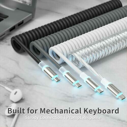 A stylish double-sleeved cable for mechanical keyboards with a detachable aviator, coil design, USB-C to USB-A, and versatile modular setup for tidy desks and reliable charging. It supports long-lasting durability and ease installation.
