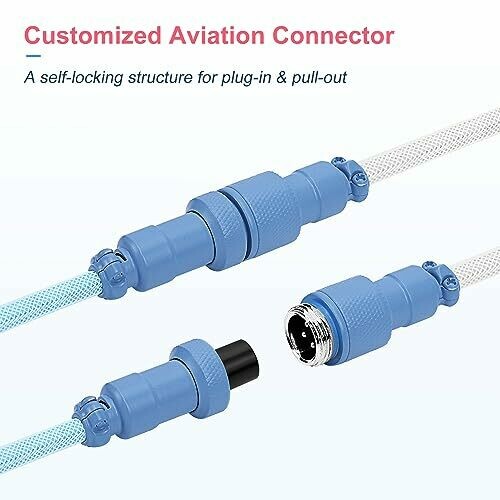 Ucinnovate Coiled Keyboard Cable, Pro Custom Coiled Usb C Cable for Gaming Keyboard, Double-sleeved Mechanical Keyboard Cable with Detachable Metal Aviator, 1.8m Usb-c to Usb-a (blue & White)