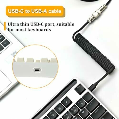 - Coiled USB-C data cable designed for mechanical keyboards, delivering high-speed and stable data transmission.