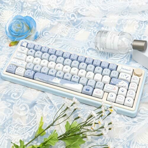 • Coomickey Blue White MOA Profile Custom PBT Keycaps 132 Keys Set