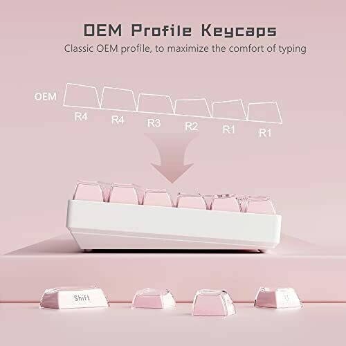 • Womier Keycaps 60 Percent - Crystal Clear Keycaps, OEM Profile 113 Keys Custom Pink Keycaps