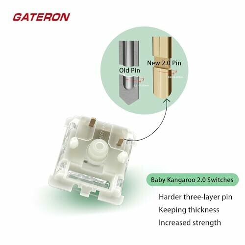 Gateron Baby Kangaroo 2.0 Keyboard Switches, 59gf tactility, 5-pin, pre-lubed, dual-stage spring, light guide pole, compatible with MX mechanical keyboards. Package