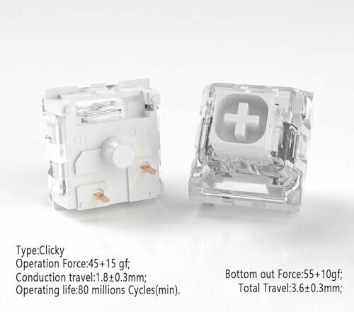 • 45gf actuation force delivers a balanced tactile and clicky experience ideal for gaming and typing.