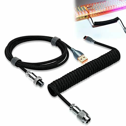 • Ucinnovate Coiled Keyboard Cable, Pro Custom Coiled Usb C Cable for Gaming Keyboard, Double-sleeved Mechanical Keyboard Cable with Detachable Metal Aviator, 1.8m Usb-c to Usb-a (black)