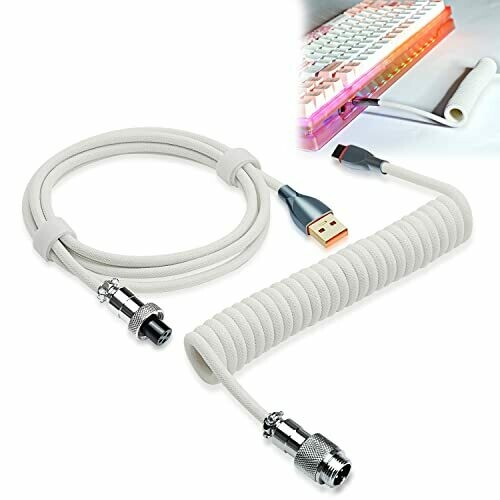- Elevate your gaming setup with a premium, double-sleeved coiled USB-C cable designed for keyboards and accessories.