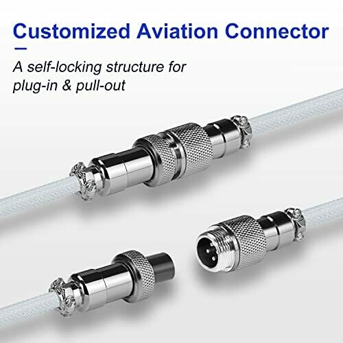 Ucinnovate Pro Custom Coiled 1.8m Usb C Cable for Gaming Keyboard, Double-sleeved Mechanical Keyboard Cable with Detachable Metal Aviator, White