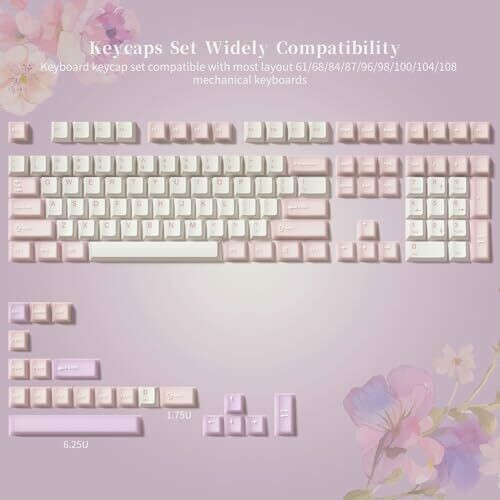 • Womier Mechanica Keyboard Keycaps Pink, Jelly PBT Keycaps 60 75 100 Percent