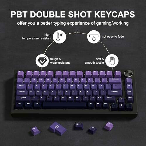 - Premium PBT keycaps with a stunning gradient purple finish for a chic, modern keyboard setup.