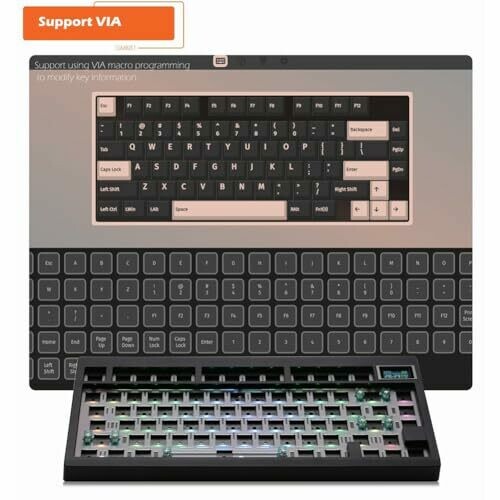 GTSP 75% Custom Barebones Keyboard Kit Gasket Mouted,blank Diy Silent Tkl Mechanical Gaming Keyboard Pcb Hot Swappable 3pin/5pin Switch with South-facing Rgb for Win/mac (m87 Kit-black)