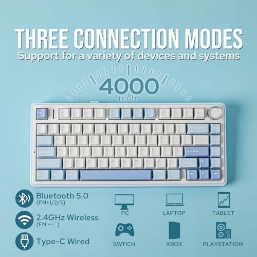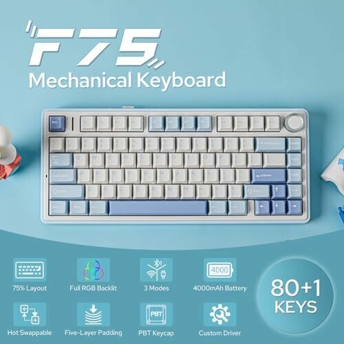 • Epomaker X Aula F75 Gasket Mechanical Keyboard, 75% Wireless Hot Swappable (Ice Vein Switch)