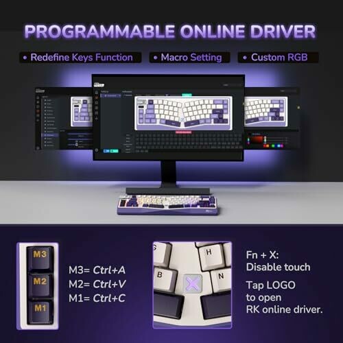 • Three programmable macro keys and online driver for RGB customization and key remapping