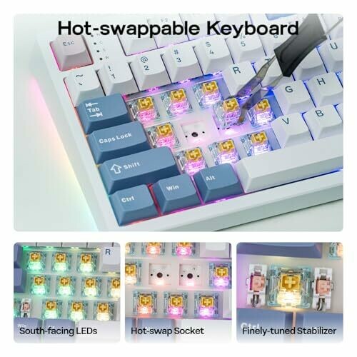 • Hot-swappable switches allowing customization of feel and sound for each keystroke.
