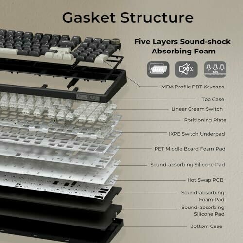 • Gasket‑mounted construction delivers a cushioned, thocky typing feel and premium keyboard experience.