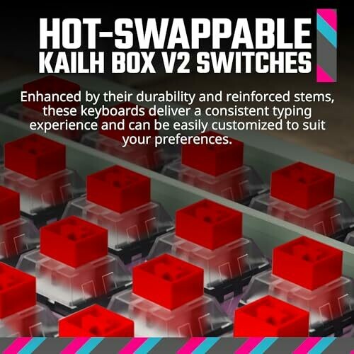 • Hot-swappable Kailh Box V2 Linear Red switches for easy customization