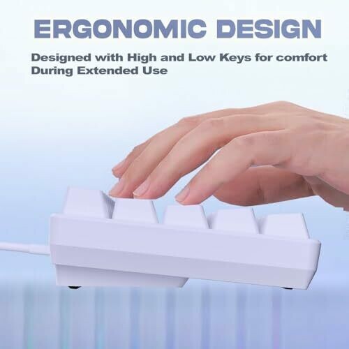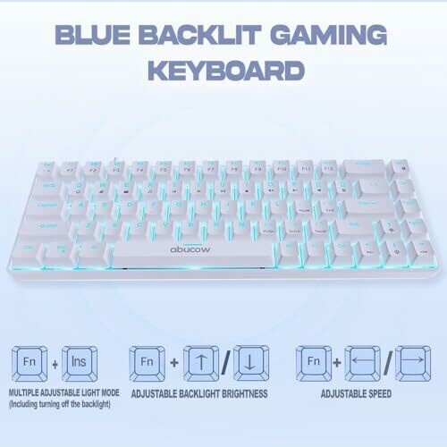 abucow 60% mechanical gaming keyboard, wired, compact layout with blue backlight and swappable white keycaps; Switches