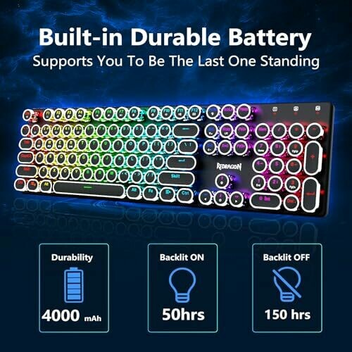 • Redragon K710 Wireless Typewriter Style Mechanical Gaming Keyboard (Blue Clicky)