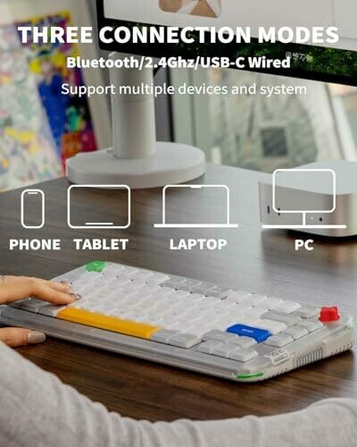 • Tri-mode connectivity with Bluetooth, 2.4G wireless, and USB-C wired for seamless pairing across devices.